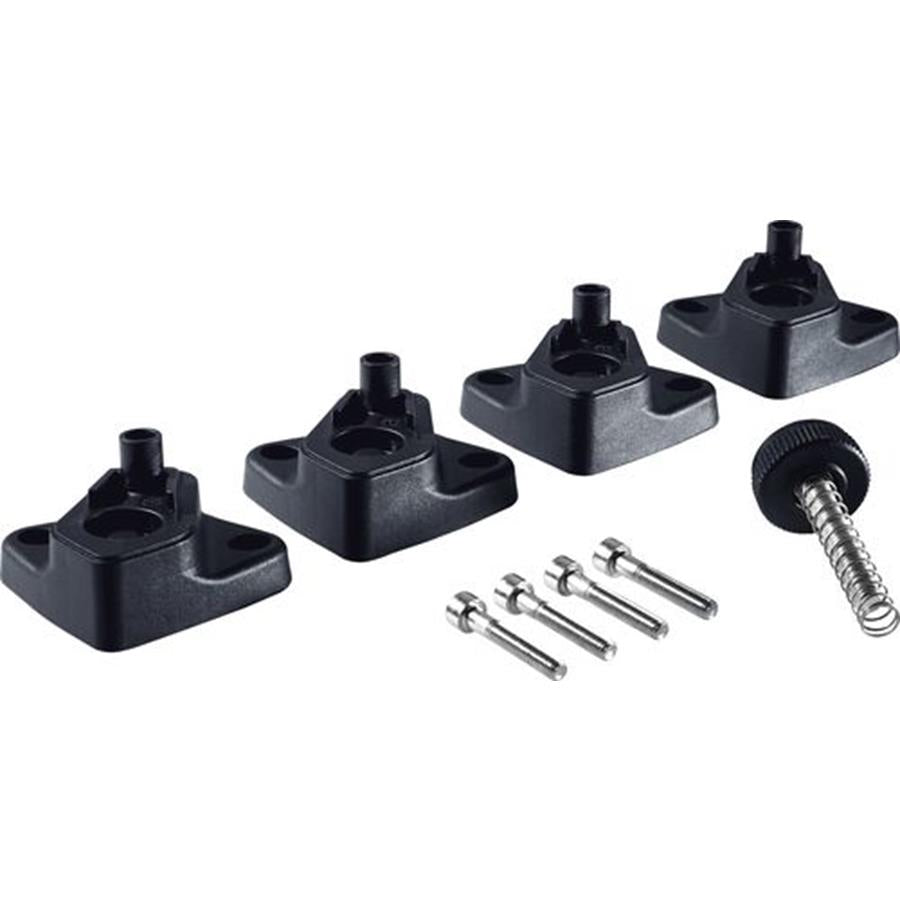 A longa procura por um apoio ideal para o processamento de peças compridas chegou ao fim. Os pés intermédios, de instalação posterior, para a elevação da KAPEX KS 60 colocam a serra à mesma altura de um Systainer SYS 1 T-LOC e Classic. Isto permite um apoio confortável de peças a trabalhar compridas.
