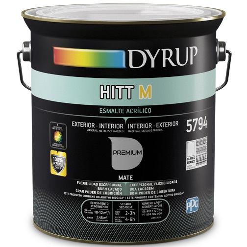 Hitt M é um esmalte aquoso mate de elevada qualidade, formulado a partir de uma emulsão 100% acrílica e pigmentação rigoramente selecionada.