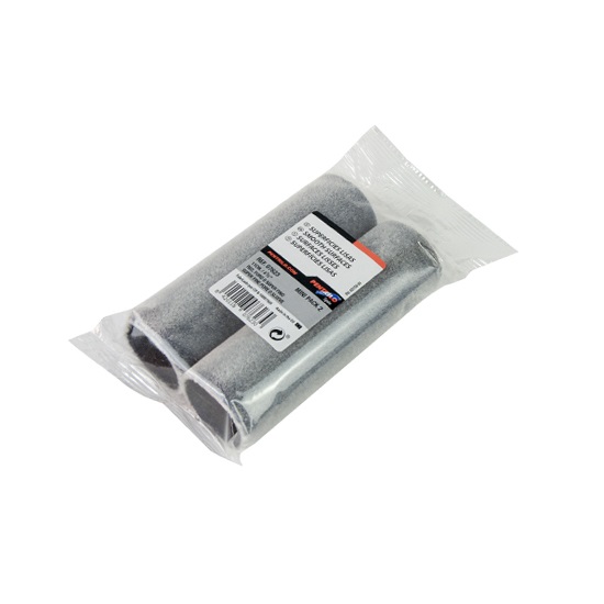 O pack de dois rolos para pintar Flocado Côncavo Negro é feito de espuma, ideal para acabamentos extra finos com esmalte sintético / base solvente.